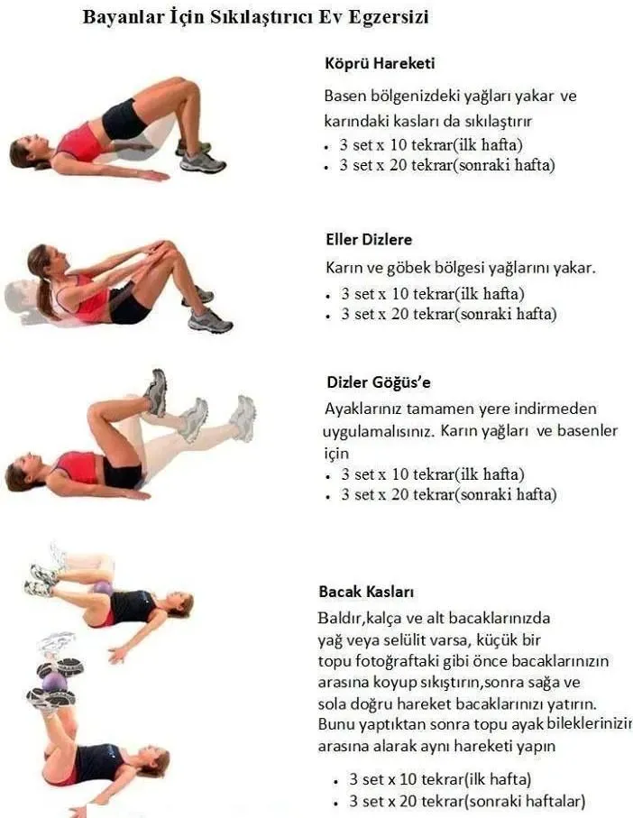 İpuçları ve Modifikasyonlar Başlangıçta hareketleri yavaşlatabilir veya dinlenmeyi artırabilirsiniz; ileri seviyede tempo veya ağırlık ekleyin; ekipmansız evde su şişeleri/kitaplar ile yük artırılabilir; sırt düz tutulmalı ve bel ağrısına dikkat edilmelidir.